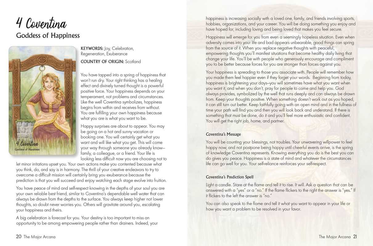 Discover your inner goddess and channel the power of these amazing female Celtic divinities. The Celtic goddesses and druids were legendary beings. Now these heavenly spirits have personal relationships with us in everything we do. All females are divinely attuned to goddesses from birth for guidance and protection through life until death. Working by divine plan, goddesses imbue us with their ancient wisdom, which becomes our own, helping us to avoid pitfalls and reach our full potential. The Celtic Goddess Oracle Deck features 52 of these inspiring deities, all beautifully illustrated. The accompanying guidebook includes seven methods to read the cards and explains the messages they have for us. For example, Cerridwen is the goddess of truth and she encourages you to be your most authentic self, while Awen, goddess of inspiration, helps you find the answers you need.