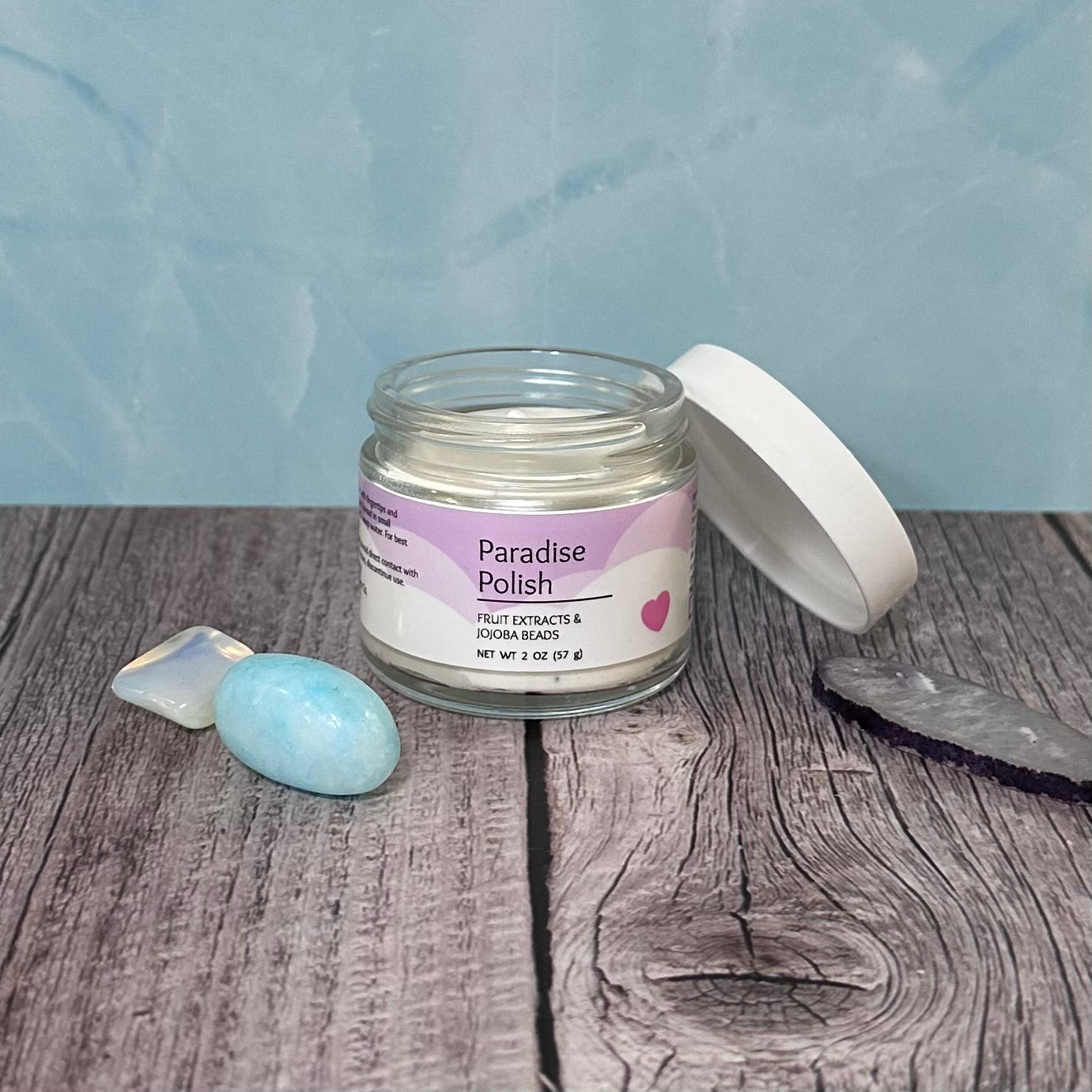 - Instantly feel the smoothness with this clean and green face polish made from fruit extracts! The aroma of vanilla + coconut is light, sweet and soothes the skin during exfoliation.