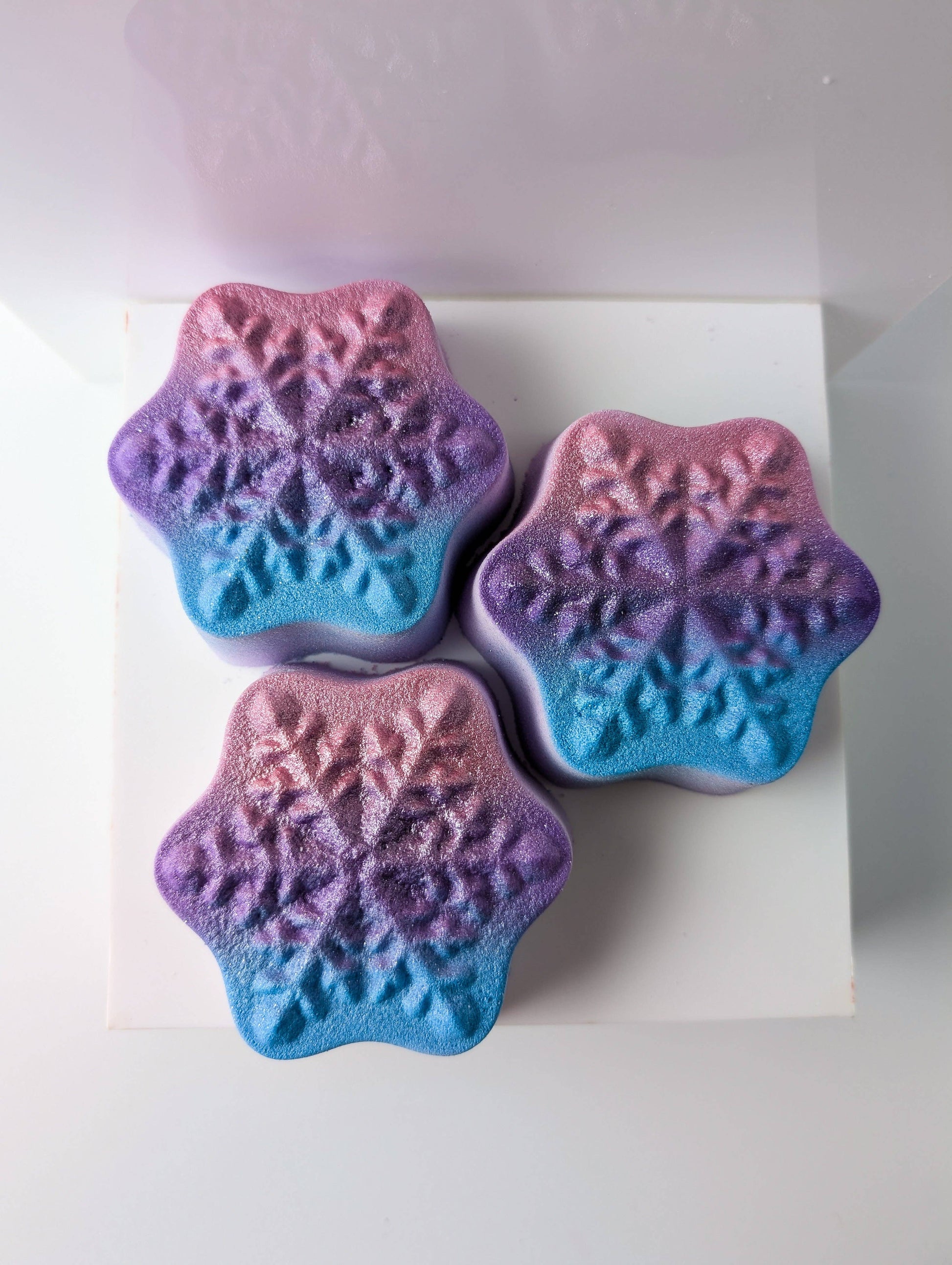 Make your holiday bath magical with our Sugar Plum Snowflake Bath Bomb! This dreamy purple snowflake is hand-painted in a pastel ombré of pink, purple, and icy blue, then topped with eco-friendly glitter for a whimsical winter sparkle. Scented in our enchanting Sugar Plum Fairy blend — juicy peach, sweet cotton candy, crisp green apple, and tangy lemon drop — this bath bomb is as playful as it is luxurious. Drop it in and watch a flurry of surprise colors swirl into your tub for the ultimate holiday escape. Perfect for: stocking stuffers, holiday self-care nights, and winter wonderland vibes.